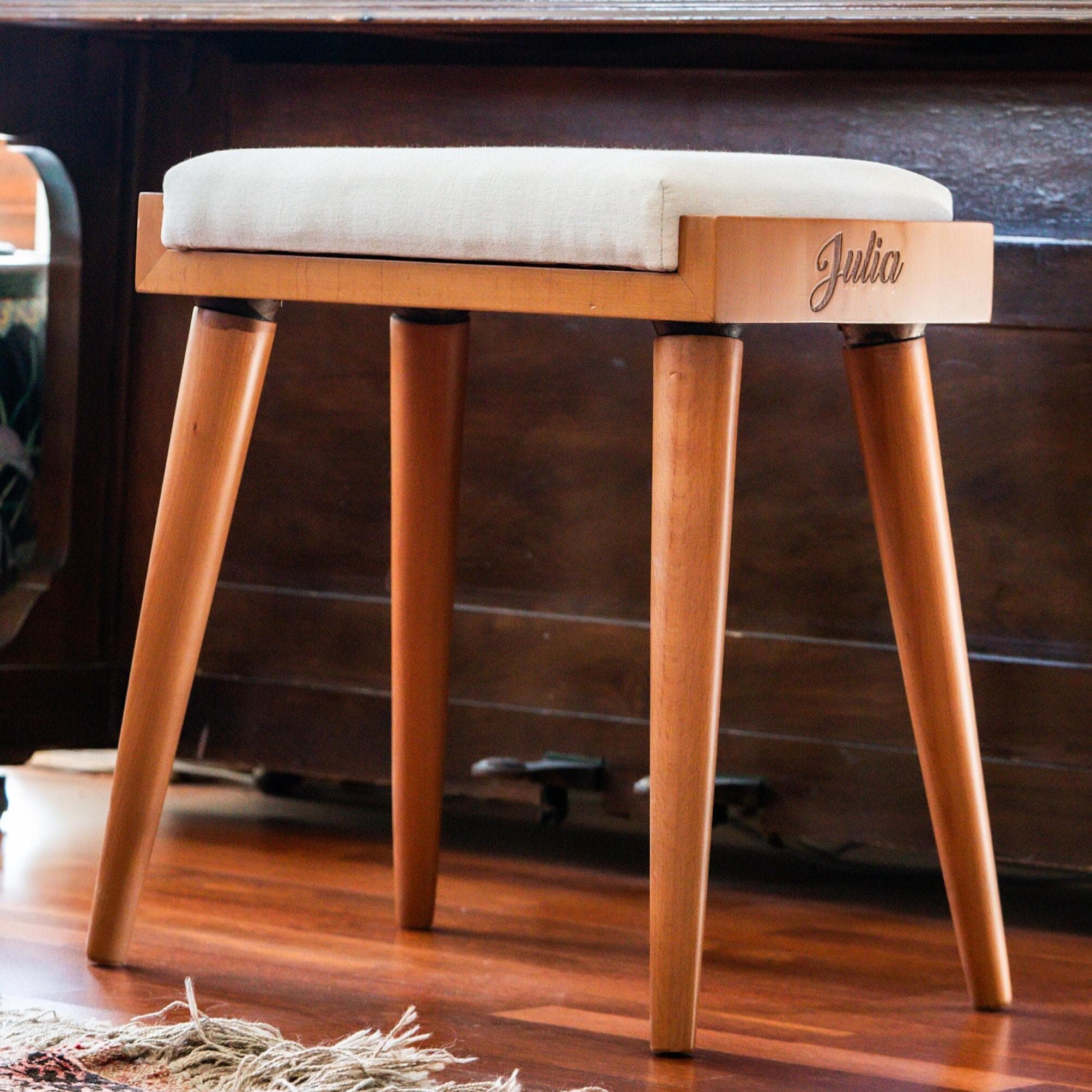 Make your piano bench truly unique! I engrave a special name, date, or short text on the side of the bench, making it a perfect personalized gift for musicians, children, beginners, music teachers, or piano enthusiasts.